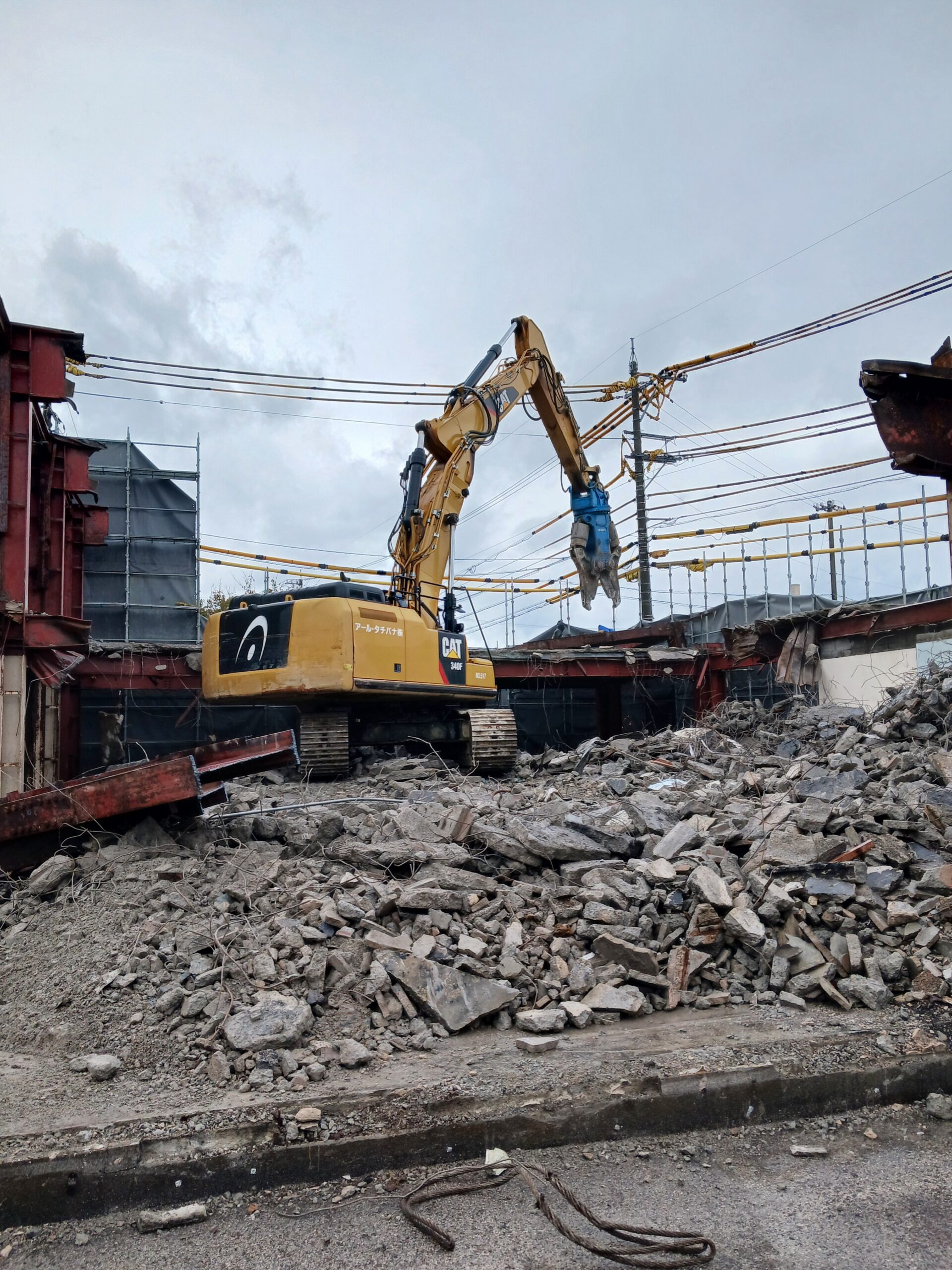 鉄骨宿舎の建物自体はロングバックホウで解体していってます(*^^)v